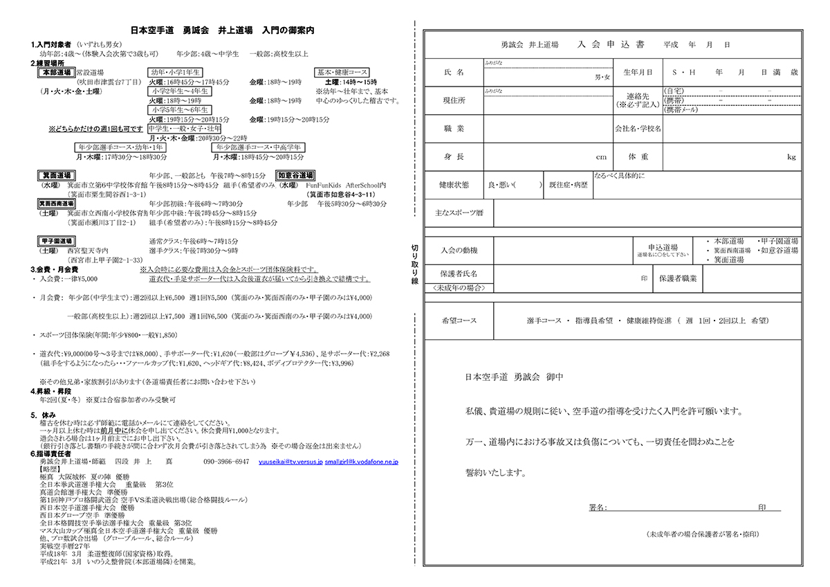勇誠会空手北大阪支部は大阪府、北摂の吹田・豊中・箕面・茨木・摂津からも練習にきて頂いている道場です。